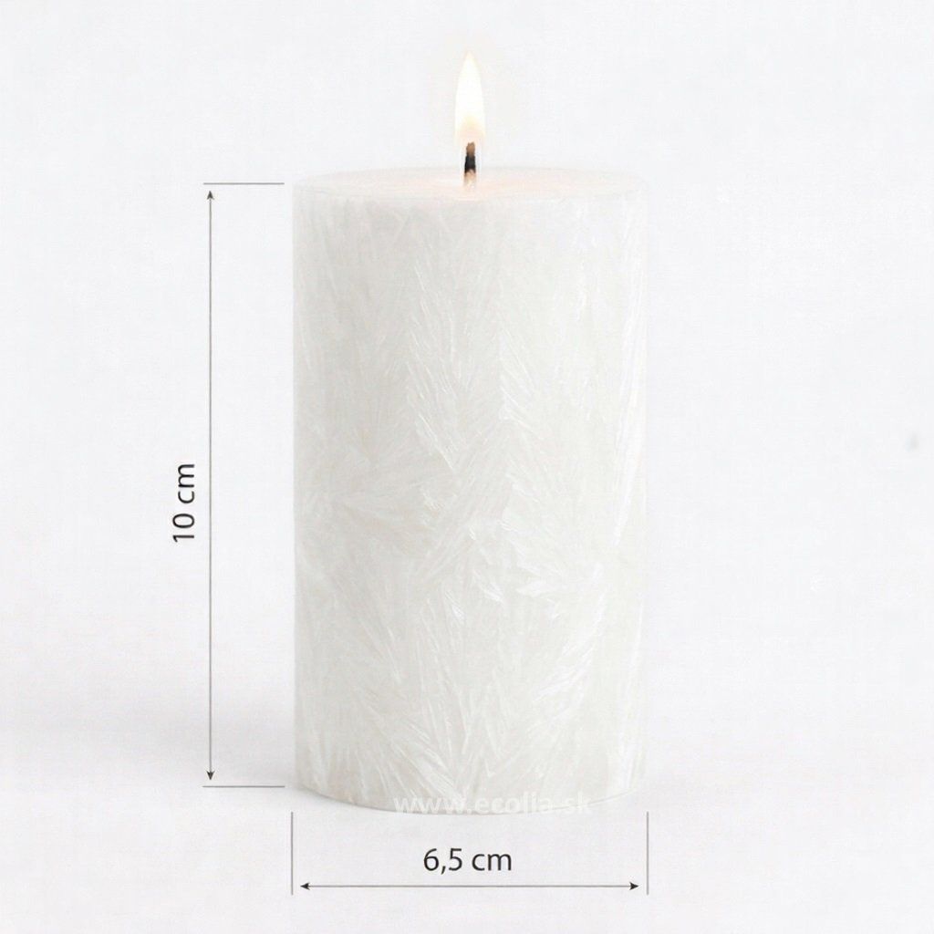 Sviečka je vyrobená zo 100% prírodného rastlinného palmového vosku, ktorý pri horení nevylučuje žiadne škodliviny. Má veľmi čisté spaľovanie a je vhodná aj pre alergikov i pre malé deti. Doba horenia sviečky je dlhšia ako u parafínových sviečok. Všetky naše sviece sú ručne vyrábané na Slovensku.