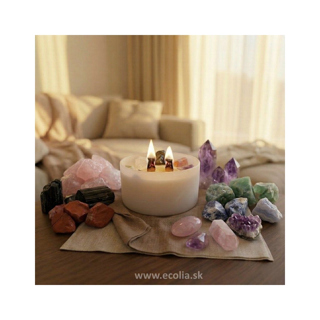 Jedným z dôvodov, prečo si vybrať práve túto sviečku, je jej hodnota, ktorá nekončí samotným horením. Vo vnútri sviečky sa nachádzajú surové prírodné kamene: ametyst, ružový kremeň, čierny achát, červený jaspis, zelený jadeit, sodalit a horský kryštál. Po dohorení sviečky vám kamene zostanú a môžete ich ďalej používať ako dekoráciu, talizman, do vrecka, na pracovný stôl alebo ako súčasť interiéru.