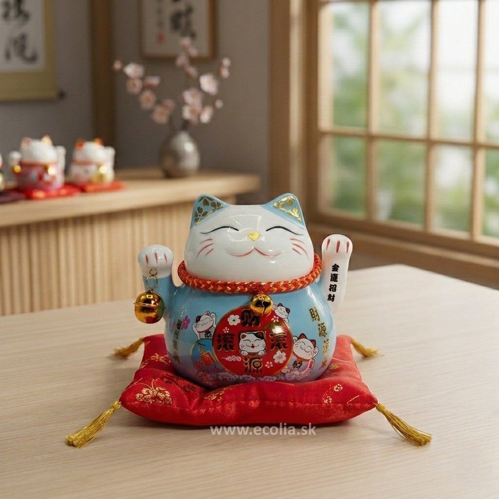 Mačka s mávajúcou labkou - Maneki Neko modrá (symbol bohatstva, šťastia a prosperity)