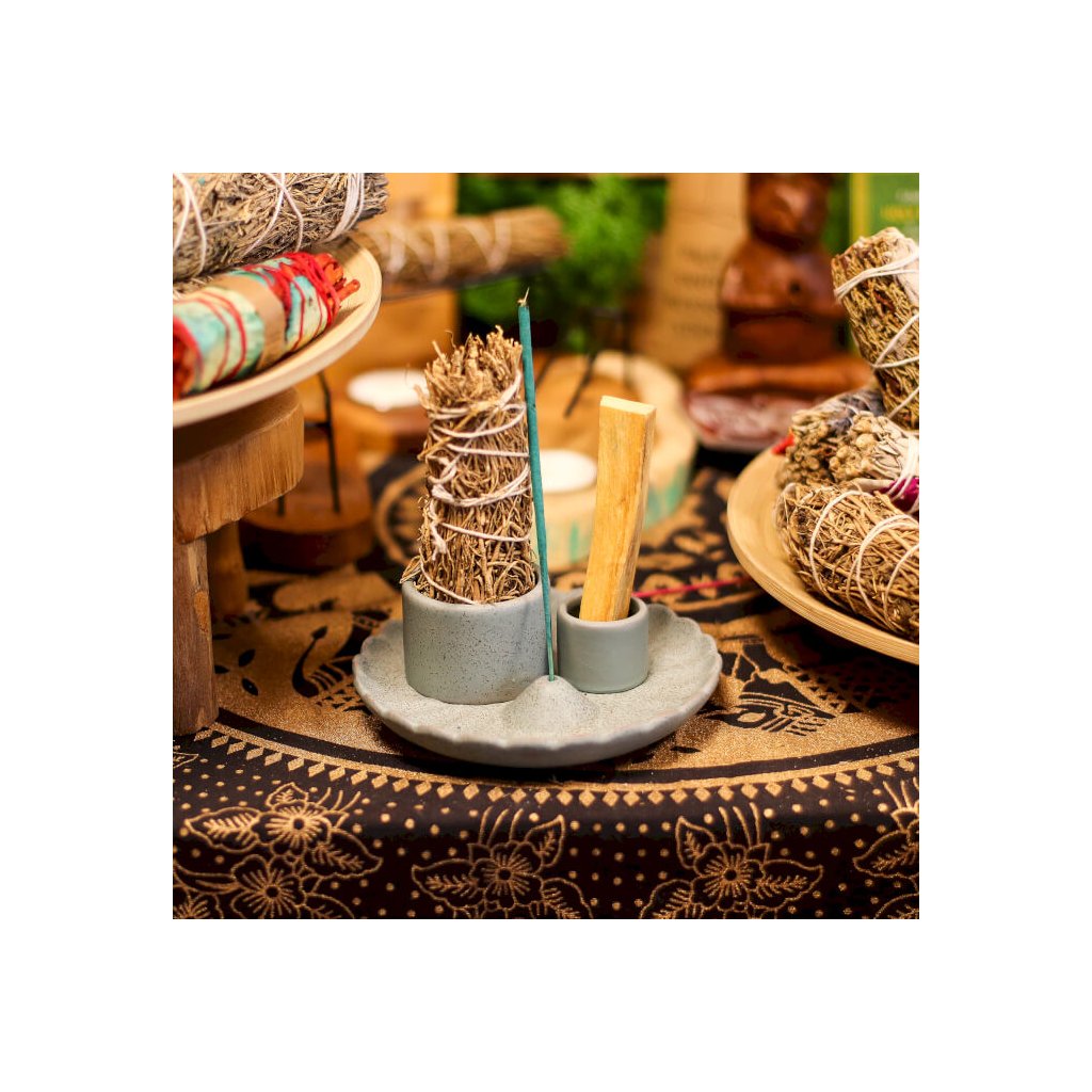 Vyrobený s dôrazom na detail, je určený na uloženie Palo Santo drievok, očistných zväzkov a vonných tyčiniek – popol zostáva elegantne zachytený, zatiaľ čo držiak dodáva priestoru krásu a harmóniu. Hladká glazúra a kvetinový tvar robia z tohto kúsku dekoratívny aj praktický doplnok, ideálny do meditačných kútikov, jogových štúdií či útulných domácich interiérov.