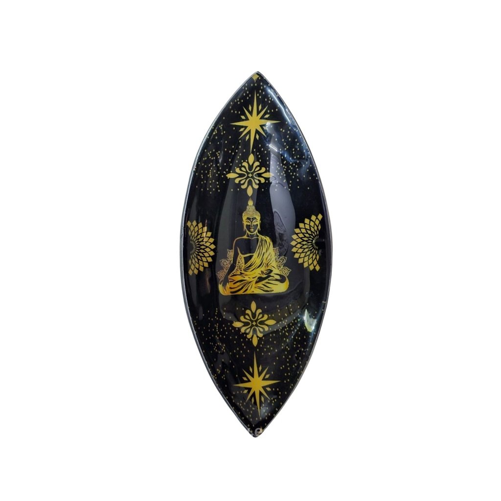 Stojan na vonné tyčinky so vzorom zlatého Budhu. Má otvory na oboch stranách pre vonné tyčinky z našej ponuky.
