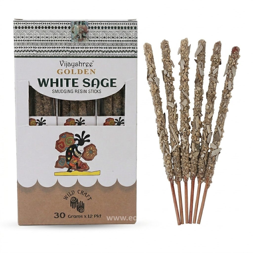 Vonné tyčinky Golden s arómou Bielej Šalvie. 6 hrubých tyčiniek v balení. Doba horenia cca 40 minút.